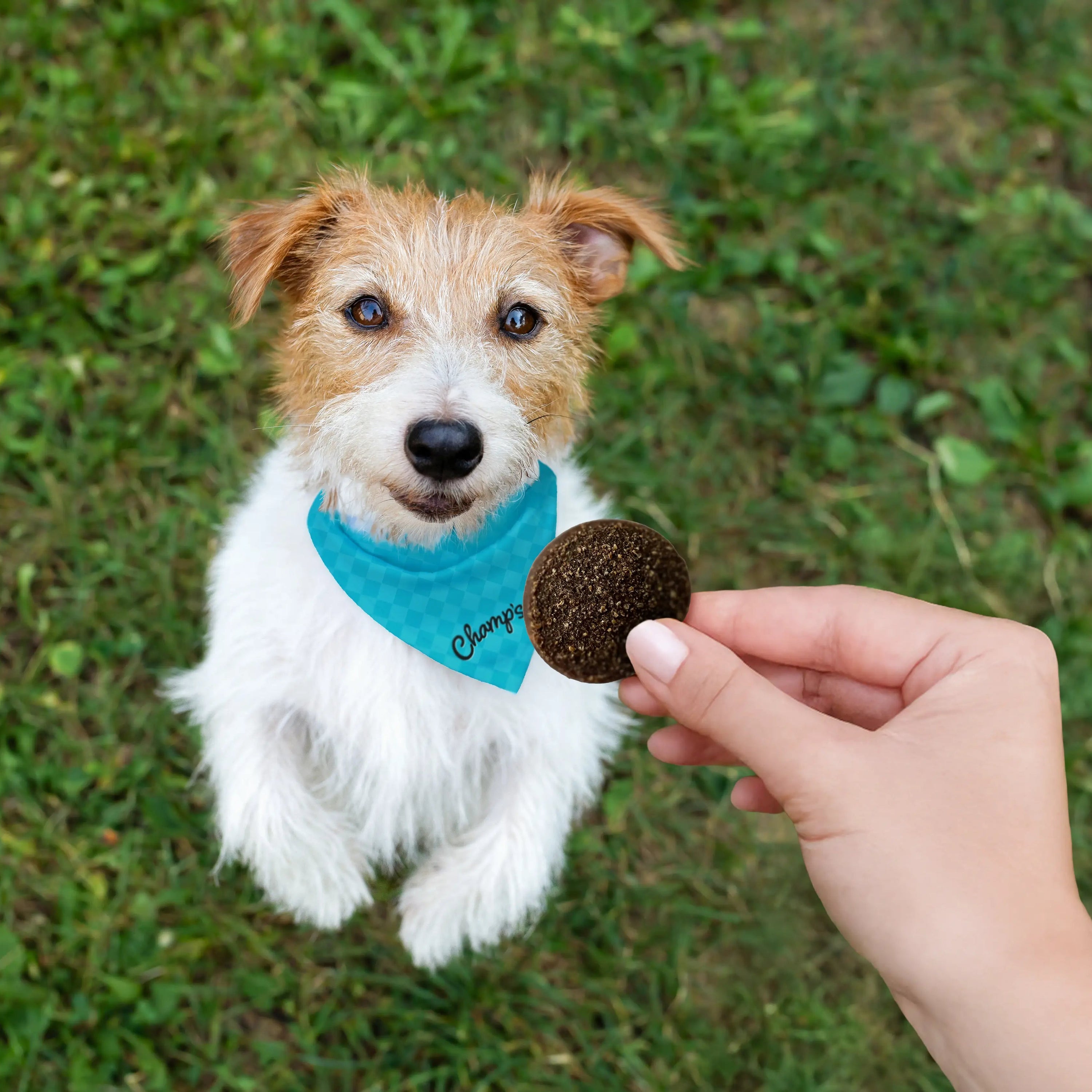 ...we’re here to make pet nutrition simple, fun, and accessible for all. And who better to lead the way than Champ himself? As the voice of our brand (and a dog himself, of course!), Champ helps pet parents make smarter choices about the treats they serve the dogs they love.